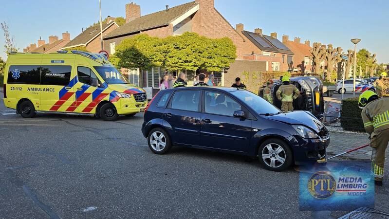 Op de Roermondsestraat in Herten zijn zaterdagavond rond 19.15 uur twee auto’s met elkaar in botsing gekomen. Door de klap belandde één van de voertuigen op zijn zijkant.