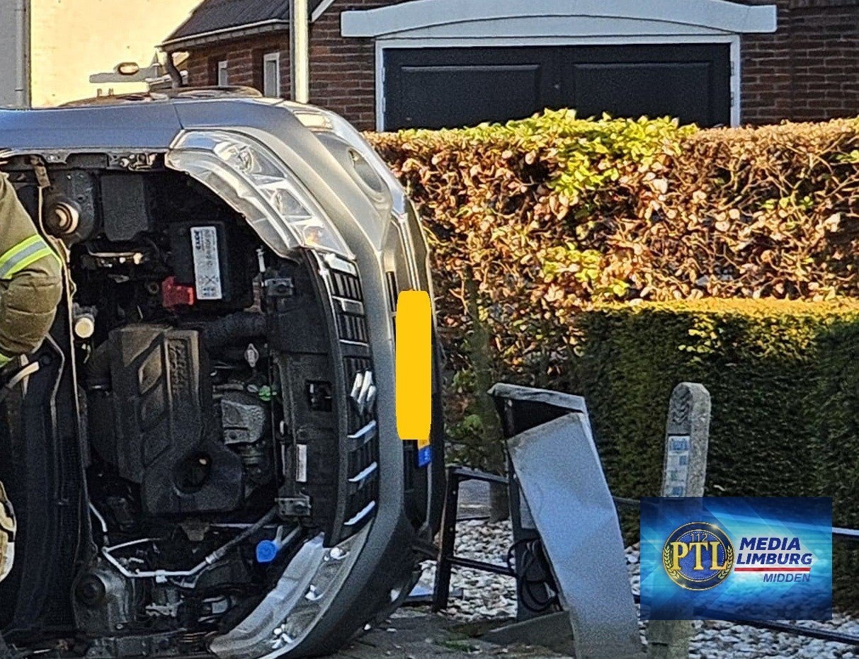 HERTEN - Auto op z'n kant bij aanrijding op Roermondsestraat.